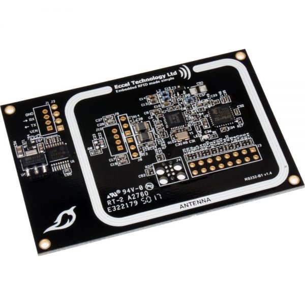 The Chilli RS232-B1 v2 is a low cost full RFID/NFC read/write device with RS232 interface that can operate in “host” connected mode or “stand-alone” mode. Supports MIFARE Classic® 1K, MIFARE Classic® 4K, NTAG2xx® and MIFARE Ultralight®. Additionally, you can read serial numbers from MIFARE Plus®, MIFARE® DESFire® and any transponder compatible with the ISO14443A standard. The RS232-B1 is based on our RFID-B1 module but is equipped with an additional integral antenna, an LED for tag in the field indication/ interrupt, mounting holes and flexible plated connection holes.